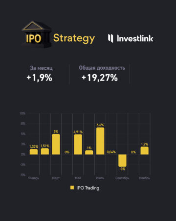 В сумме эти две сделки дали +1,90% доходности за ноябрь и помогли удержать общую доходность стратегии IPO Trading с начала года на уровне +19,27%.