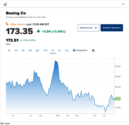 Трагическим символом неудач крупнейшего американского авиастроителя стали две катастрофы: Lion Air в 2018 году и Ethiopian Airlines в 2019 году, унесшими жизни 346 человек. Такова была цена конкурентной борьбы с более экономичными самолетами Airbus. Но главный инвестиционный стратег Hightower Advisors Стефани Линк заявила в эфире CNBC, что «худшее уже позади, и я считаю Boeing одной из лучших идей на 2025 год».